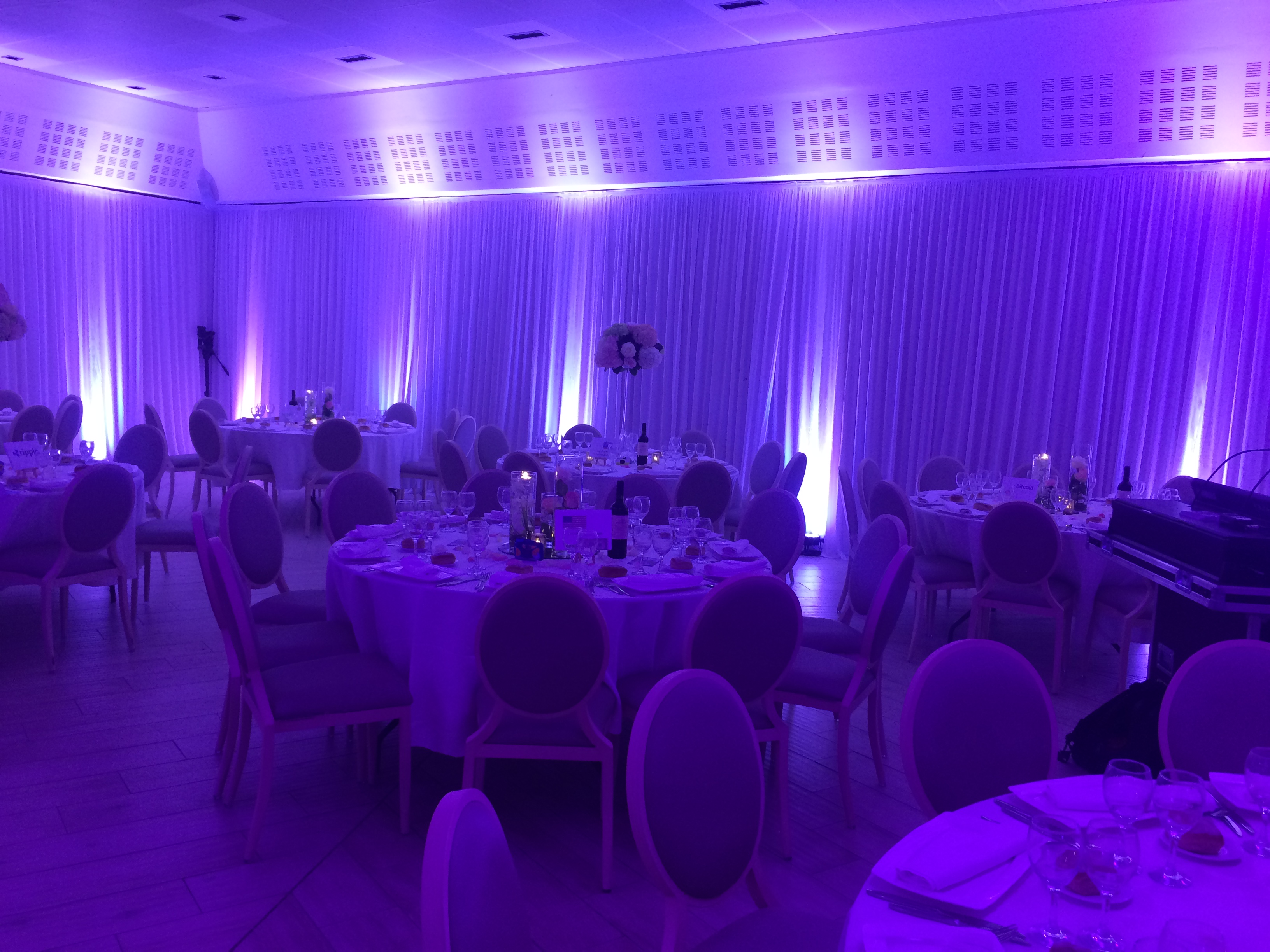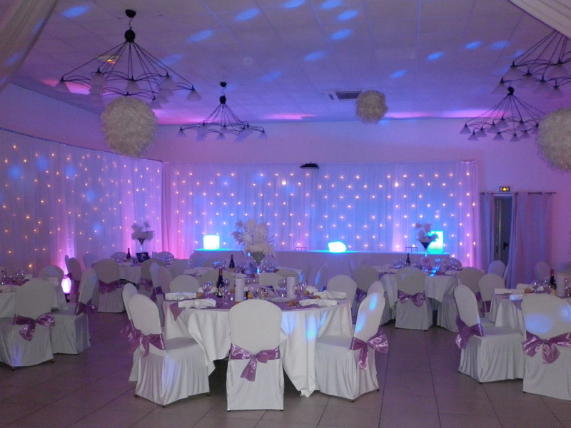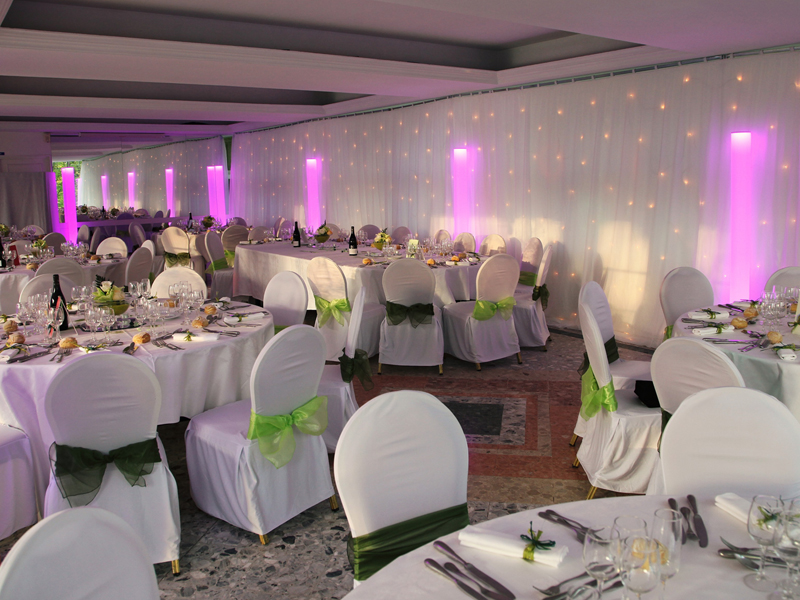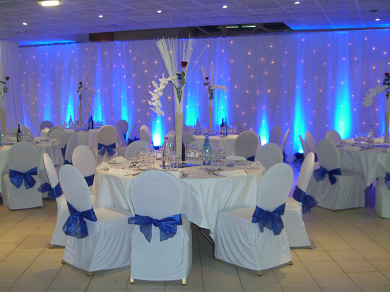 Habiller des cloisons avec des rideaux lucioles ou en lycra blanc avec de l’éclairage leds changera totalement l'ambiance de votre salle et créera un look inoubliable